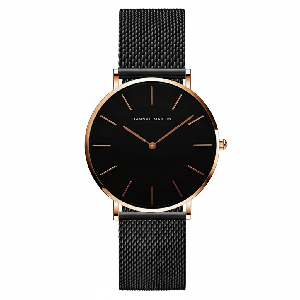 The Aurora Watch combines the precision of Japanese Quartz movement with the allure of polished rose-gold stainless steel. Crafted for the modern woman who values both elegance and reliability, it’s the perfect companion from desk to dinner.