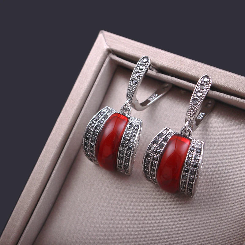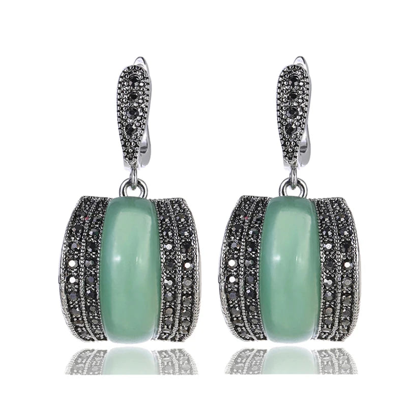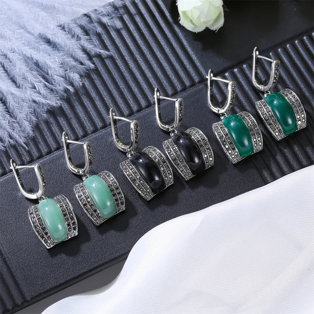 The Verona Earrings by In Rome capture the allure of vintage artistry through geometric resin stones framed in antique silver and accented with black rhinestones. Each piece evokes timeless sophistication and confidence — a true statement for women who embrace individuality and style.